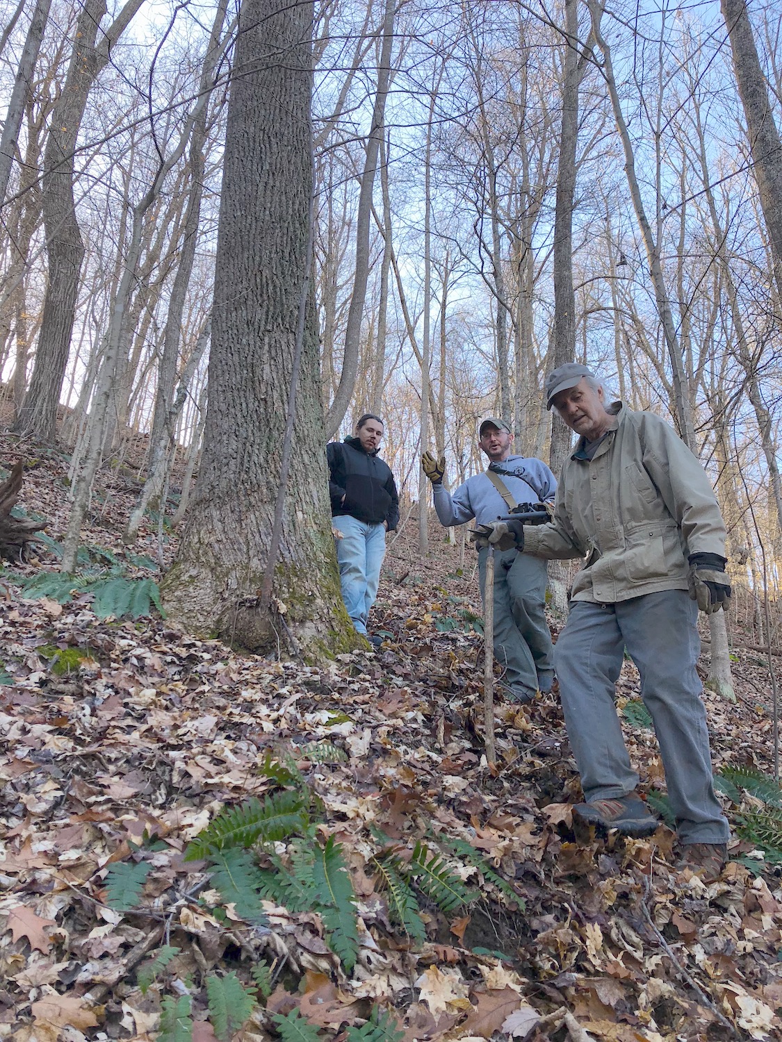 A walk with Drew Feight, Eli Allen, and Derrick Parker from Horsley’s above the bank of Upper Twin—BM 731’ASL—to the Cooper monument on the ridge, inching like bugs on a wall up the final hump at 1160, then north through the saddle to the isolate point overlooking the creek where rises the eight-foot obelisk: an odd, fluted cap at its apex, in relief the names of Clay Henry (1858-1913) and Mary Cooper, whose dates are not on offer. On its south side, the standard warning to the passing stranger, of whom there might have been a few in the intervening years. I was one, passing by, shocked to stumble on it in search of a plausible path from my cabin on Tucker’s Run to Buckhorn Ridge.